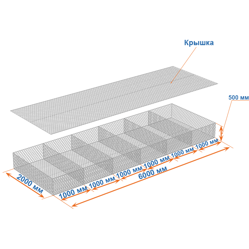Габион матрац ГСИ-М 6х2х0,5 оцинкованный, Ø проволоки 2,7 мм, размер ячейки 6х8 см
