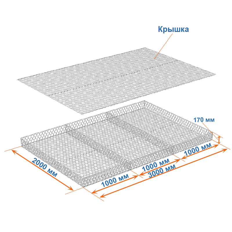 Габион матрац ГСИ-М 3х2х0,17 оцинкованный / ЦП, Ø проволоки 2,7/3,7 мм, размер ячейки 8х10 см фото