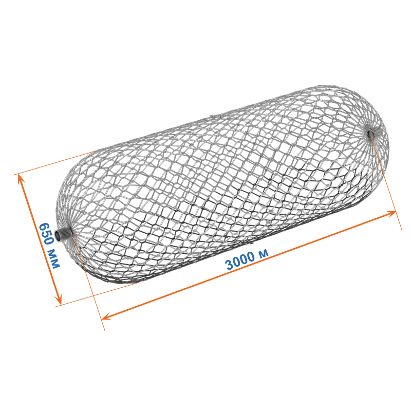 Цилиндрический габион 3x0,65x0,99 представляет собой мешкообразную конструкцию, изготовленную из сетки двойного кручения.