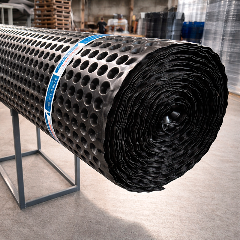 Материал используется как дренажная мембрана и как защитный слой в составе систем, где важны отвод воды от конструкции, защита гидроизоляции от повреждений, снижение риска переувлажнения подземной части объекта и повышение долговечности подземных элементов.